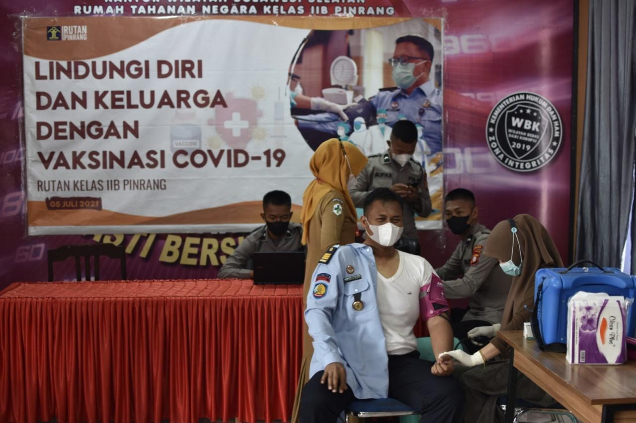 Sebanyak 43 pegawai Rumah Tahanan Negara (Rutan) Kelas IIB Pinrang menerima vaksinasi booster Covid-19.