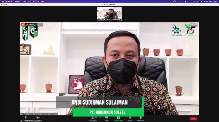 TRIBUN-TIMUR.COM,MAKASSAR - Pelaksana Tugas Gubernur Sulsel, Andi Sudirman Sulaiman menghadiri pelantikan Badko Himpunan Mahasiswa Islam (HMI) dan Korps HMI-Wati Sulselbar Periode 2021-2023 secara virtual, Kamis 10 Februari 2022.