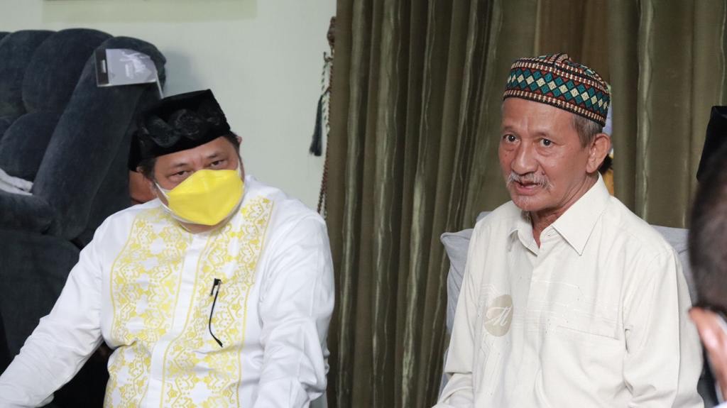 TRIBUN-TIMUR.COM, SIDOARJO - Menko Perekonomian Airlangga Hartarto berkunjung ke Pesantren Progresif Bumi Shalawat di Sidoarjo, sowan kepada KH Agoes Ali Masyhuri (Gus Ali), Minggu (20/2/2022).