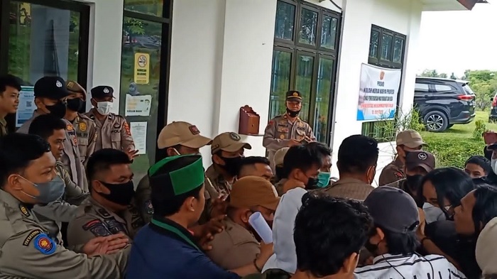 Mahasiswa memaksa masuk ke kantor itu untuk diterima oleh Kepala Dinas PMD A Haerani Rasyid.