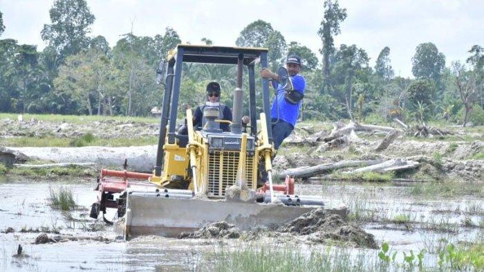 Untuk itu Pemda bekerjasama dengan PT Komatsu Indonesia dalam pemulihan lahan sawah milik petani.