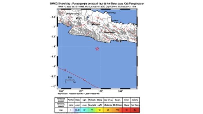 Peristiwa gempa bumi 3,9 SR mengguncang wilayah Jawa Barat atau Jabar, Senin (14/3/2022) malam ini.