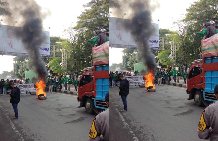 Dua kelompok mahasiswa ini menutup dua ruas jalan.