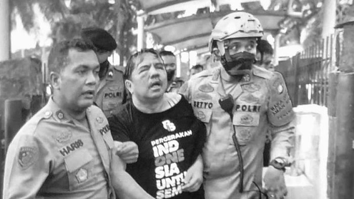 Ade Armando dikeroyok hingga babak belur diduga pelakunya para peserta aksi unjuk rasa.
