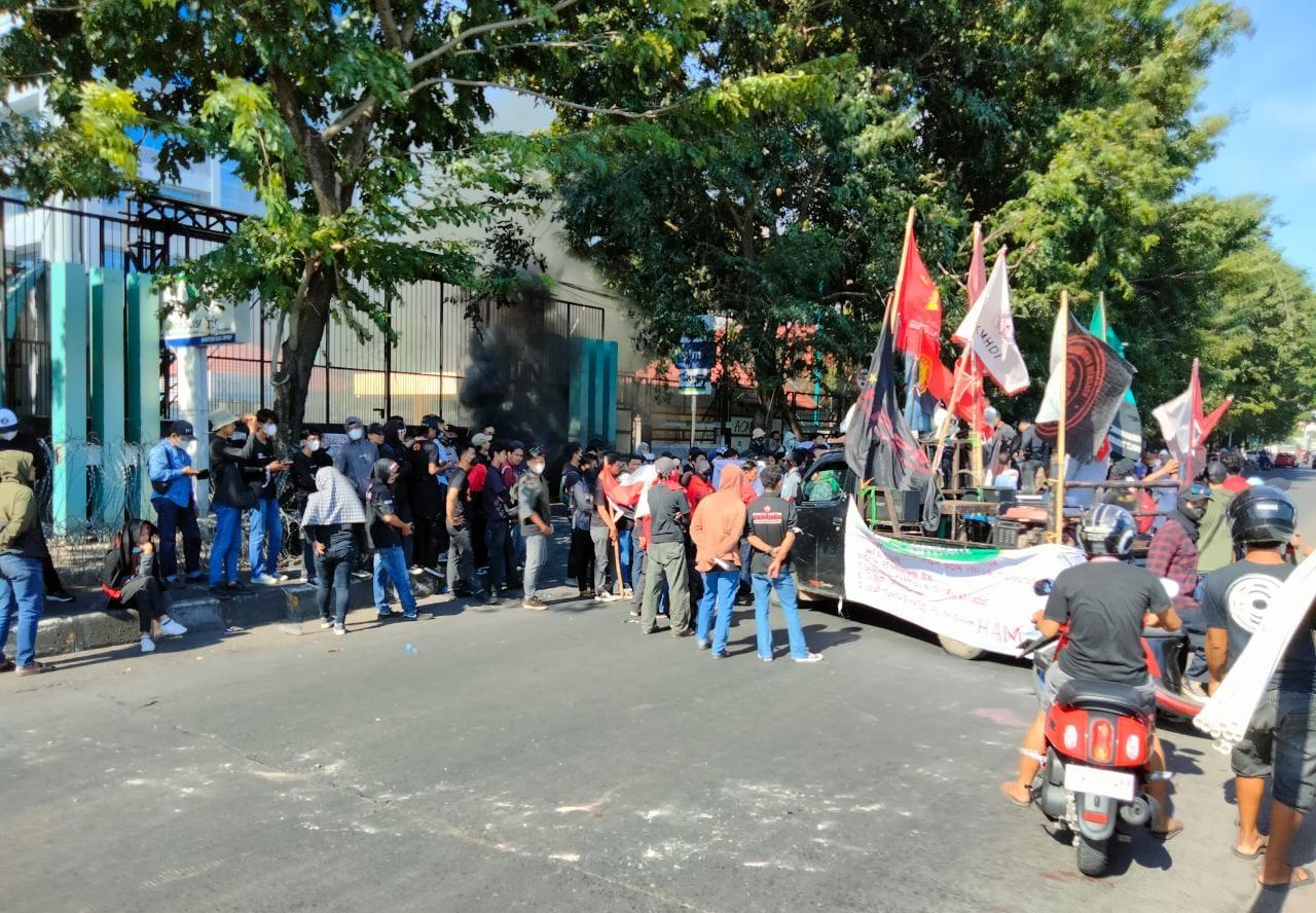 Puluhan mahasiswa kembali unjuk rasa di DPRD Sulsel, Jl Urip Sumoharjo Makassar, Rabu (13/4/2022) siang.