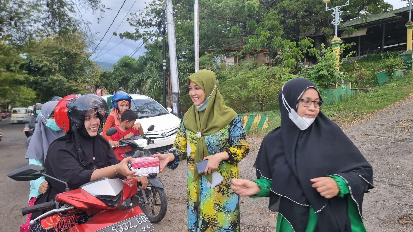 Anggota DPRD Sulsel, Andi Nurhidayati Zainuddin membagikan menu buka puasa kepada pengguna jalan di Lamumpatue Soppeng, Sabtu (16/4/2022).