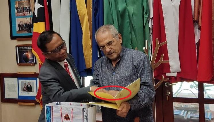 Pertemuan Menteri Koordinator Bidang Politik, Hukum, dan Keamanan (Menko Polhukam) dan Presiden Timor Leste untuk membahas sesuatu.