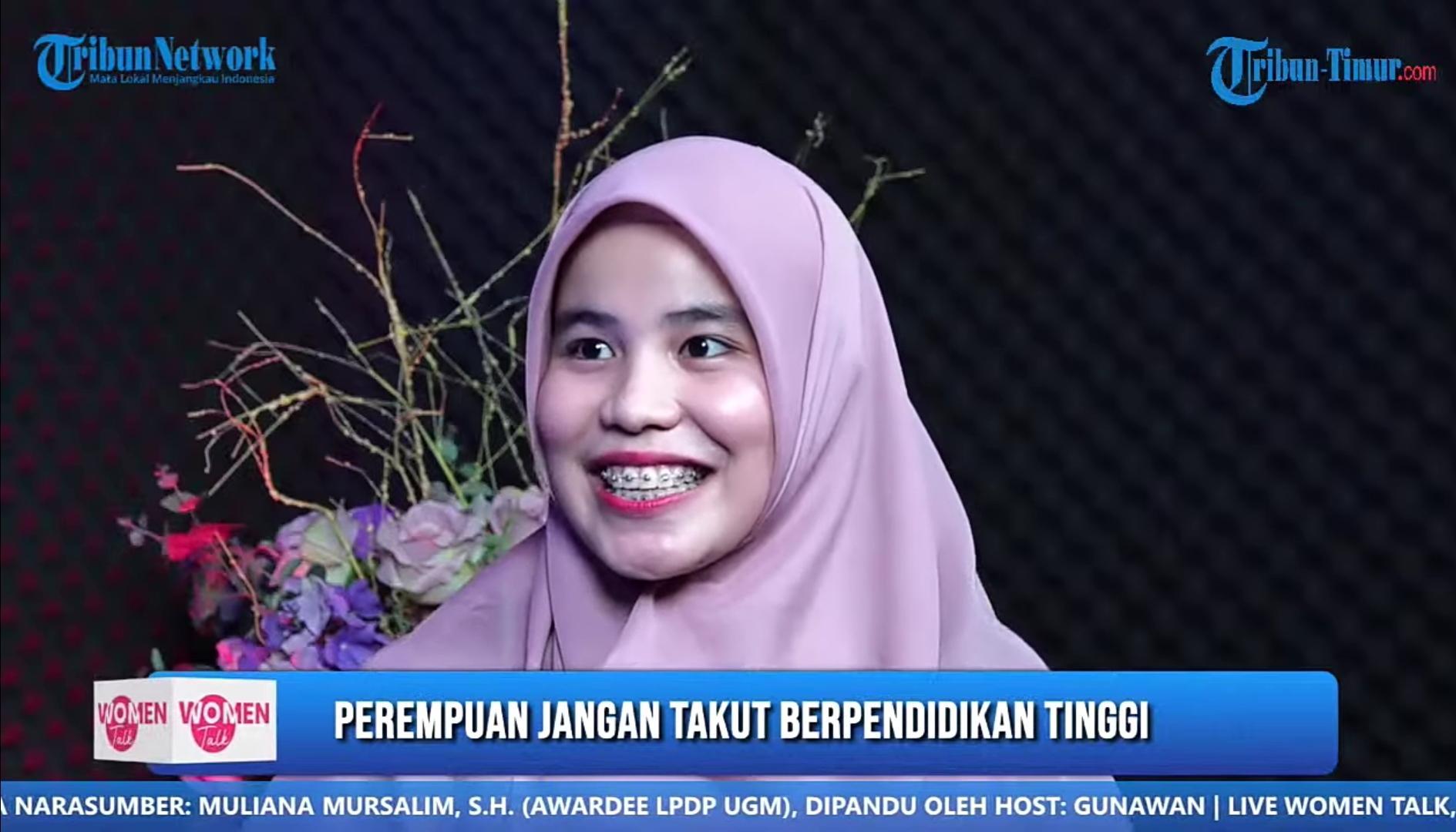 TRIBUN-TIMUR.COM, MAKASSAR - Muliana Mursalim, perempuan yang sempat viral di video call Najwa Shihab untuk mengikuti Wisuda Angkatan LDR tahun 2020 secara virtual ini hadir sebagai narasumber di Women Talk Tribun Timur, Selasa (21/6/2022).