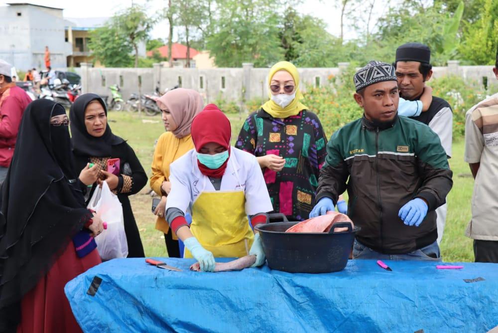 Kemudian Polsek membagikan daging kurban itu ke warga setempat.