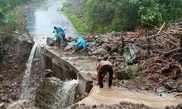 Ada beberapa titik longsor sepanjang jalan di dua desa itu.
