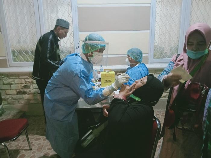 PPIH Embarkasi Makassar sedang memeriksa antigen jamaah haji di sekitaran Poliklinik Asrama Haji Sudiang, Kamis (28/7/2022).