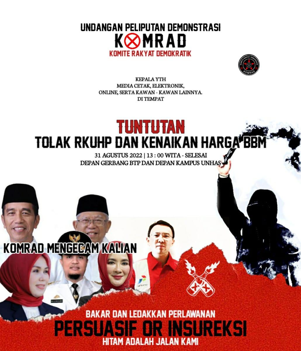 Beredar informasi, flayer aksi dari Komite Rakyat Demokratik (Komrad) yang akan dilaksanakan hari ini, Rabu (31/8/2022).