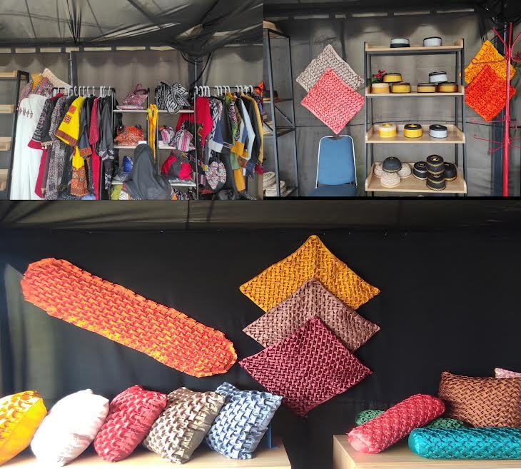 Lemenda Gresmaker menampilkan produk pakaian casual dari dikombinasikan dengan tenun motif Toraja. Ada pula tas dan topi.