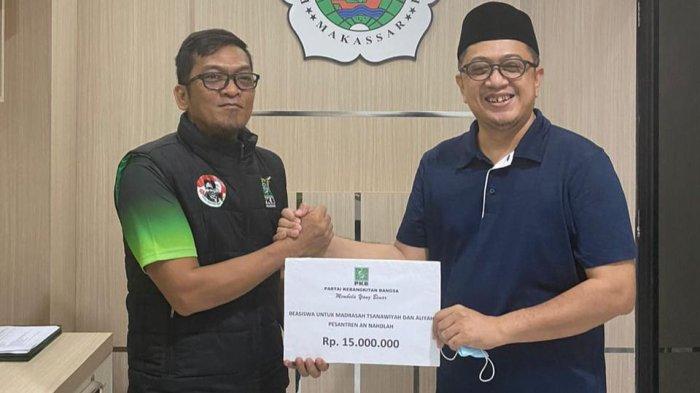 Ketua DPC PKB Kota Makassar Fauzi Andi Wawo menyalurkan beasiswa bagi santri pondok pesantren Annahdlah Makassar Sabtu (1/10/2022).