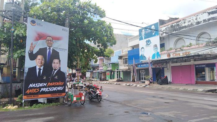 Baliho itu bertuliskan Nasdem Partaiku Anies Presidenku dengan gambar Anies Baswedan paling atas lalu ada Ketua DPW Nasdem Sulsel, Rusdi Masse dan Wakil Ketua DPRD Parepare, Tasming Hamid.