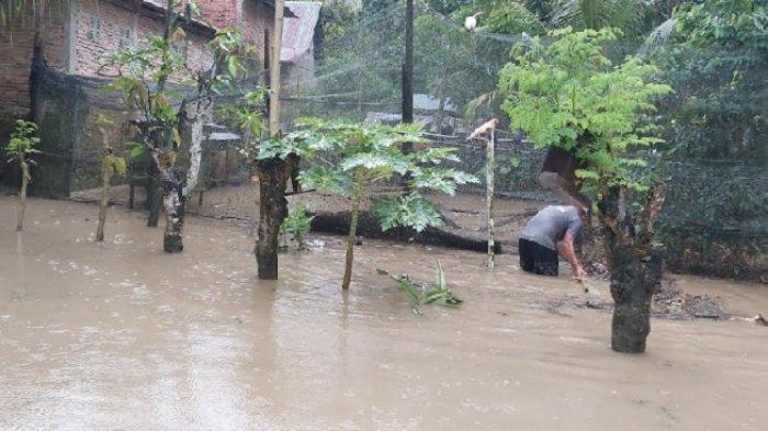Hujan deras membuat air di Sungai Mata Allo meluap ke pemukiman penduduk.