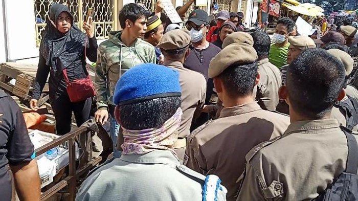 MAKASSAR, TRIBUN-TIMUR.COM - Proses relokasi pedagang bawang di kawasan Pasar Terong Makassar, oleh petugas Satpol PP diwarnai keributan, Kamis (13/10/2022) siang.