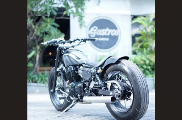 Selain itu, stang dan lampu indikator diubah menjadi lebih kokoh dan compact dengan desain custom ini.