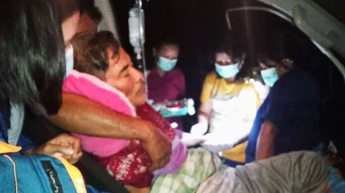 Kakek terpaksa ditandu sejauh 13 kilometer menuju puskesmas yang berada di kecamatan karena akses jalan sulit.