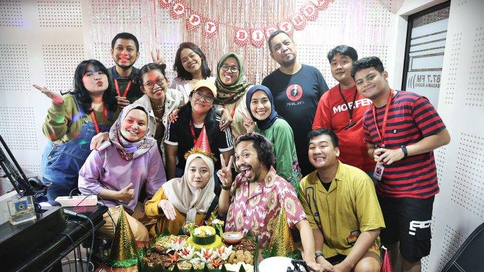 TRIBUN-TIMUR.COM, MAKASSAR - Para penyiar dan kru Radio Madama foto bersama saat merayakan Hari Ulang Tahun (HUT) ke 34 Radio Madama di Jl. Kajaolalido Makassar, Rabu (2/11).