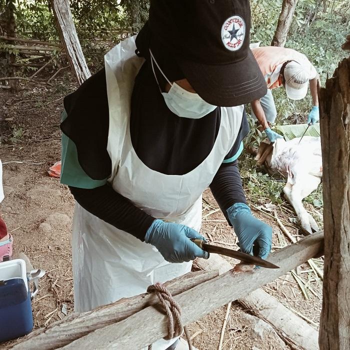 Sementara dokter hewan BBVet Maros, drh Dini Wahyu Yudianingtyas turun mengambil sampel darah terhadap sapi yang mati.