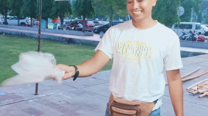 Sejak pekan K-UMKM Expo dibuka, dirinya bersama istri menjajakan kuliner kekinian seperti bakso bakar, apang pella dan gorengan.