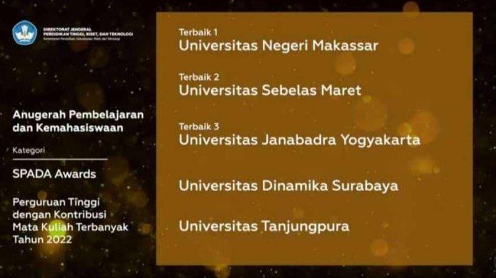 Melalui Anugrah Ristekdikti Tahun 2022, UNM keluar sebagai Perguruan Tinggi Terbaik 1 dengan Kontribusi Terbanyak di Spada Dikti tahun 2022.
