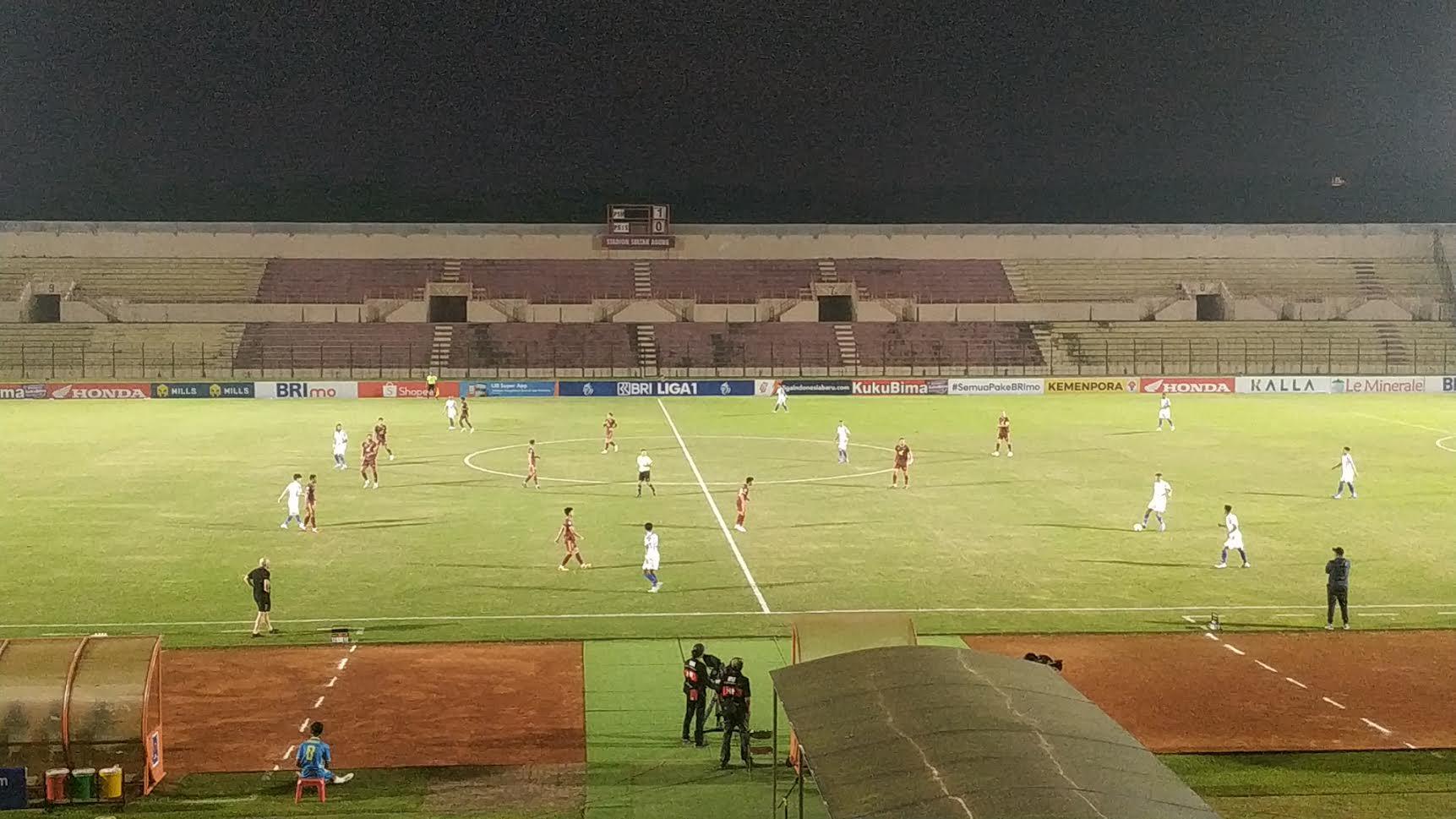 Tendangan kerasnya hanya melambung diatas gawang Reza Arya.