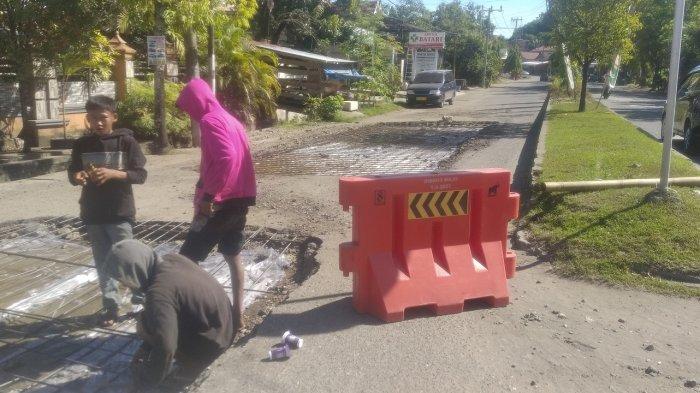 "kepada warga diminta kesabarannya, jalan ini sementara diperbaiki oleh Dinas Pekerjaan Umum dan secepatnya akan diselesaikan" kata Sabran.