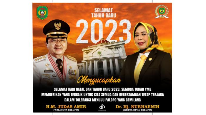 Menyambut malam tahun baru, Walikota Palopo, H.M. Judas Amir bersama Ketua DPRD Palopo, Hj Nurhaeni turut menyampaikan ucapan selamat Natal dan Tahun Baru 2023.