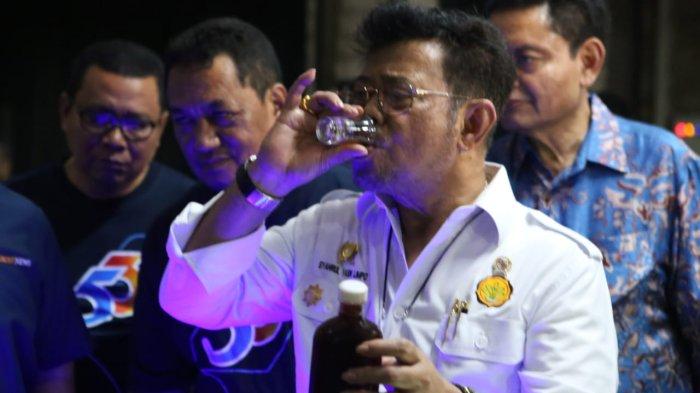 Menteri Pertanian Syahrul Yasin Limpo meninum kopi dalam festival kopi nusantara 2023 di Jakarta Rabu (1/2/2023).