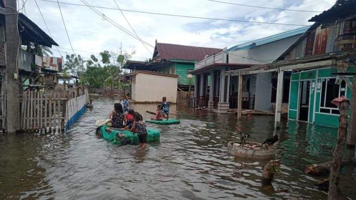 TRIBUNSINJAI.COM, SINJAI TIMUR - Banjir rob melanda Kecamatan Sinjai Timur, Kabupaten Sinjai, Sulawesi Selatan, Jumat (24/2/2023).
