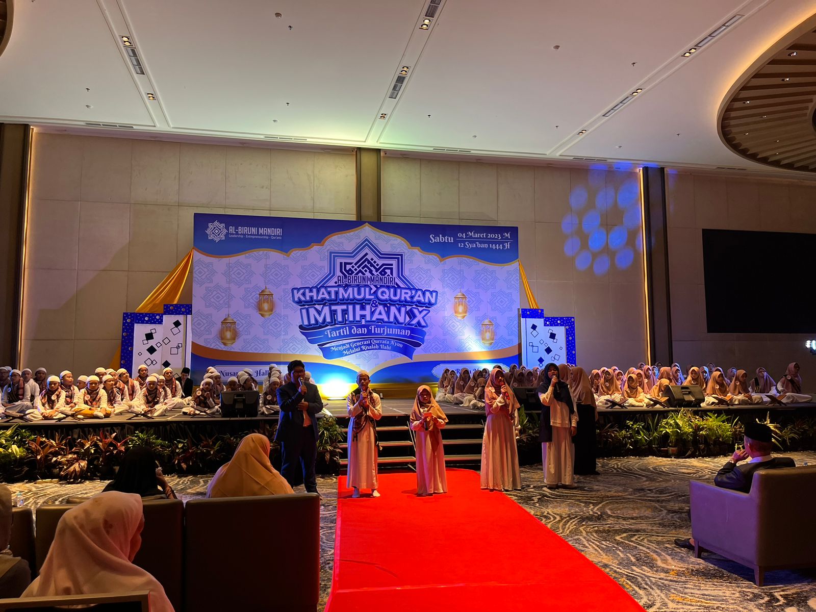 Program bertajuk Khatmul Qur'an dan Imtihan X, Al-Biruni Mandiri Tahun 2023 dengan tema Menjadi Generasi Qurrata A'yun Melalui Risalah llahi ini digelar di Nusantara Hall Lt ll, Hotel The Rinra Makassar, Sabtu (4/3/2023).