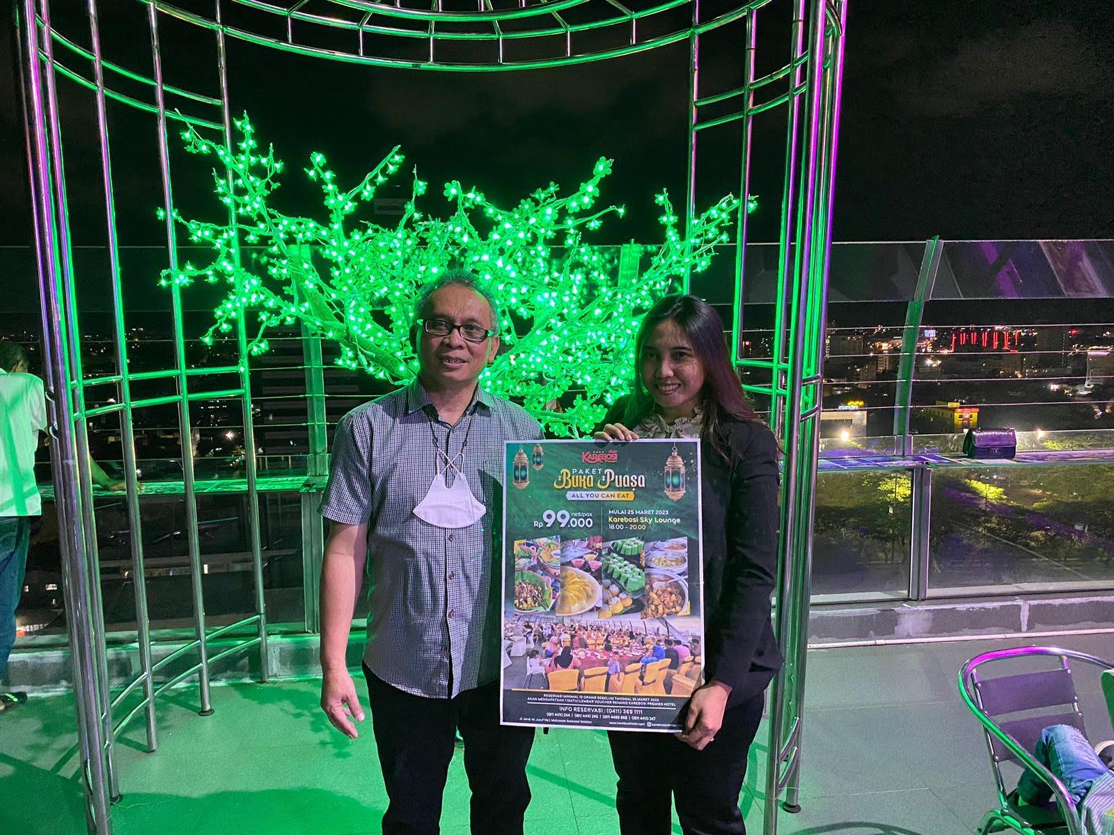 Keterangan foto: Manajemen Hotel Karebosi Premier saat memperlihatkan poster menu paket buka puasa di lantai 20 hotel, Sabtu (11/3/