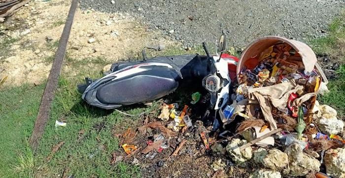 Warga setempat menduga pengendara BeAT menghindari lubang dan hilang kendali.