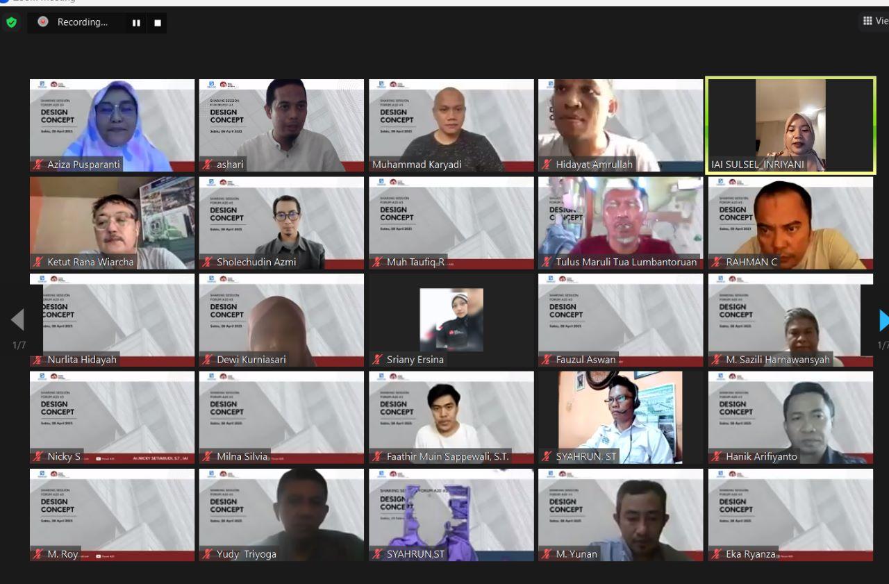 Agenda bertema Sharing Session itu menghadirkan dua narasumber utama yaitu Ar. Aziza Pusparanti, ST dan Ar. Muhammad Karyadi., ST, MT yang berlangsung secara virtual via aplikasi Zoom, Sabtu (8/3/2023).