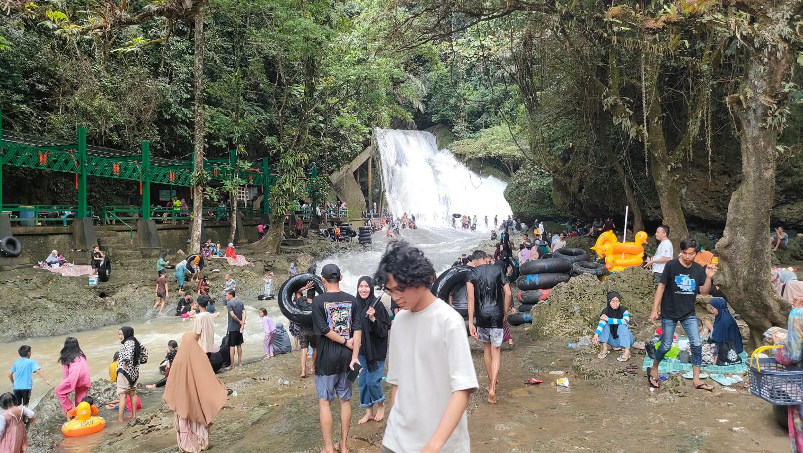 TRIBUNMAROS.COM, MAROS - Taman Wisata Alam Bantimurung, Kabupaten Maros, Sulawesi Selatan dibanjiri pengunjung, dua hari setelah perayaan Idulfitri, Senin (24/4/2023).