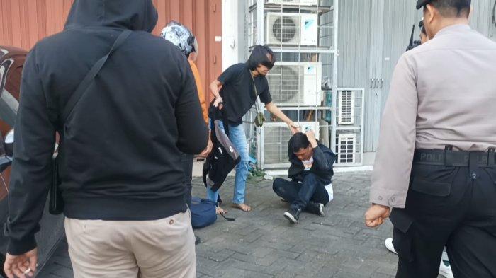 Seperti salah seorang pria berjaket hitam, kaos putih dan celana hitam diamankan.