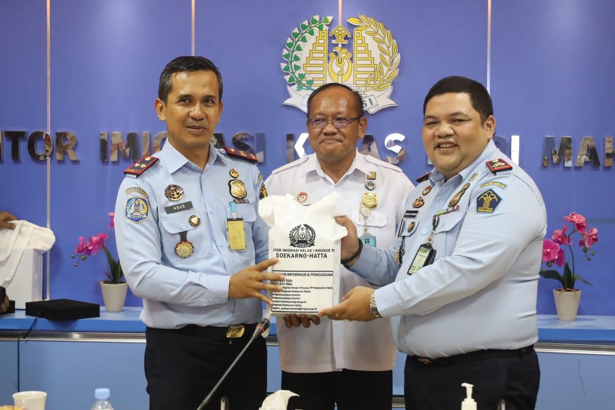 TRIBUN-TIMUR.COM - Kepala Kantor Imigrasi Kelas I TPI Makassar, Agus Winarto menerima kunjungan Studi tiru dari Kantor Imigrasi Kelas I Khusus TPI Soekarno Hatta kunjungan dipimpin langsung oleh Kepala Kantor Imigrasi Kelas I Khusus TPI Soekarno Hatta, Muhammad Tito Ardianto.