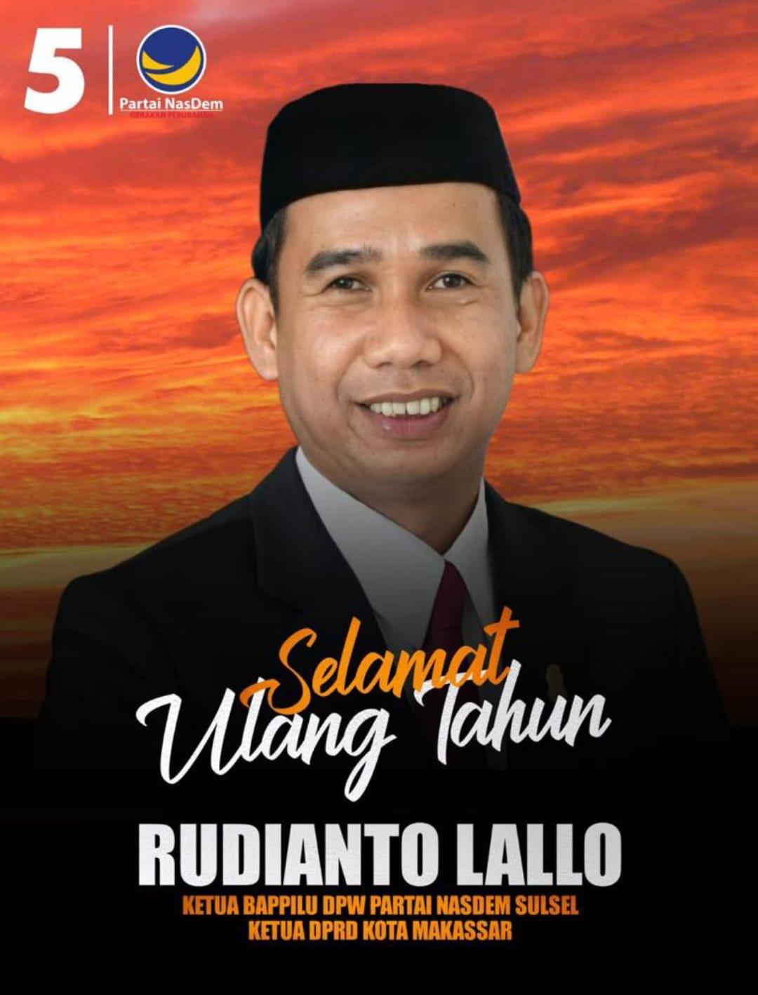 TRIBUN-TIMUR.COM, MAKASSAR - Ketua Dewan Perwakilan Rakyat Daerah (DPRD) Kota Makassar Rudianto Lallo genap berusia 41 tahun.