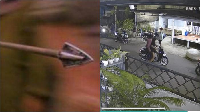 Melihat korbannya terjatuh, kawanan geng motor itu pun melepas anak panah busur ke arah korban.