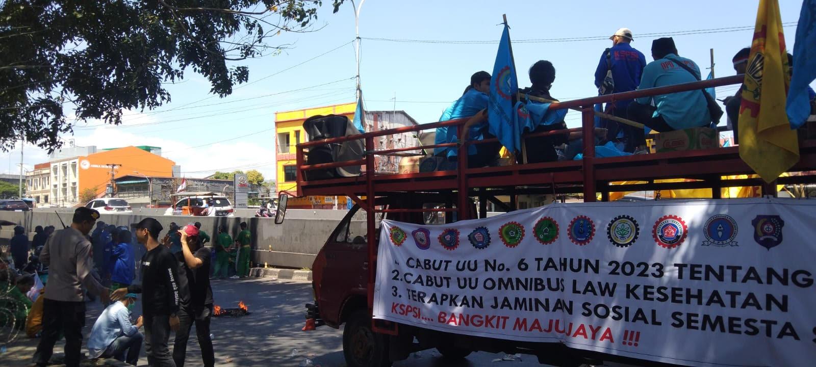 TRIBUN-TIMUR.COM, MAKASSAR - Diklaim 1.000 orang ikut dalam aksi serikat buruh akan padati fly over, Jalan Urip Sumoharjo, Kecamatan Panakukang, Kota Makassar, Kamis (10/8/2023) siang.