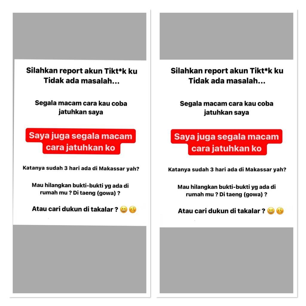 Dalam postingan di Instagram ia juga menduga sang mantan pacar mencari dukung di Takalar.