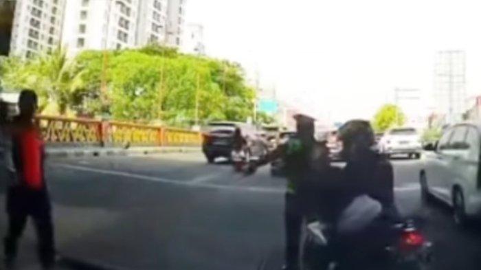 Namun, dalam kejadian yang mengejutkan, pengendara tersebut dengan cepat melaju pergi begitu perempuan yang dibonceng telah turun dari kendaraan.