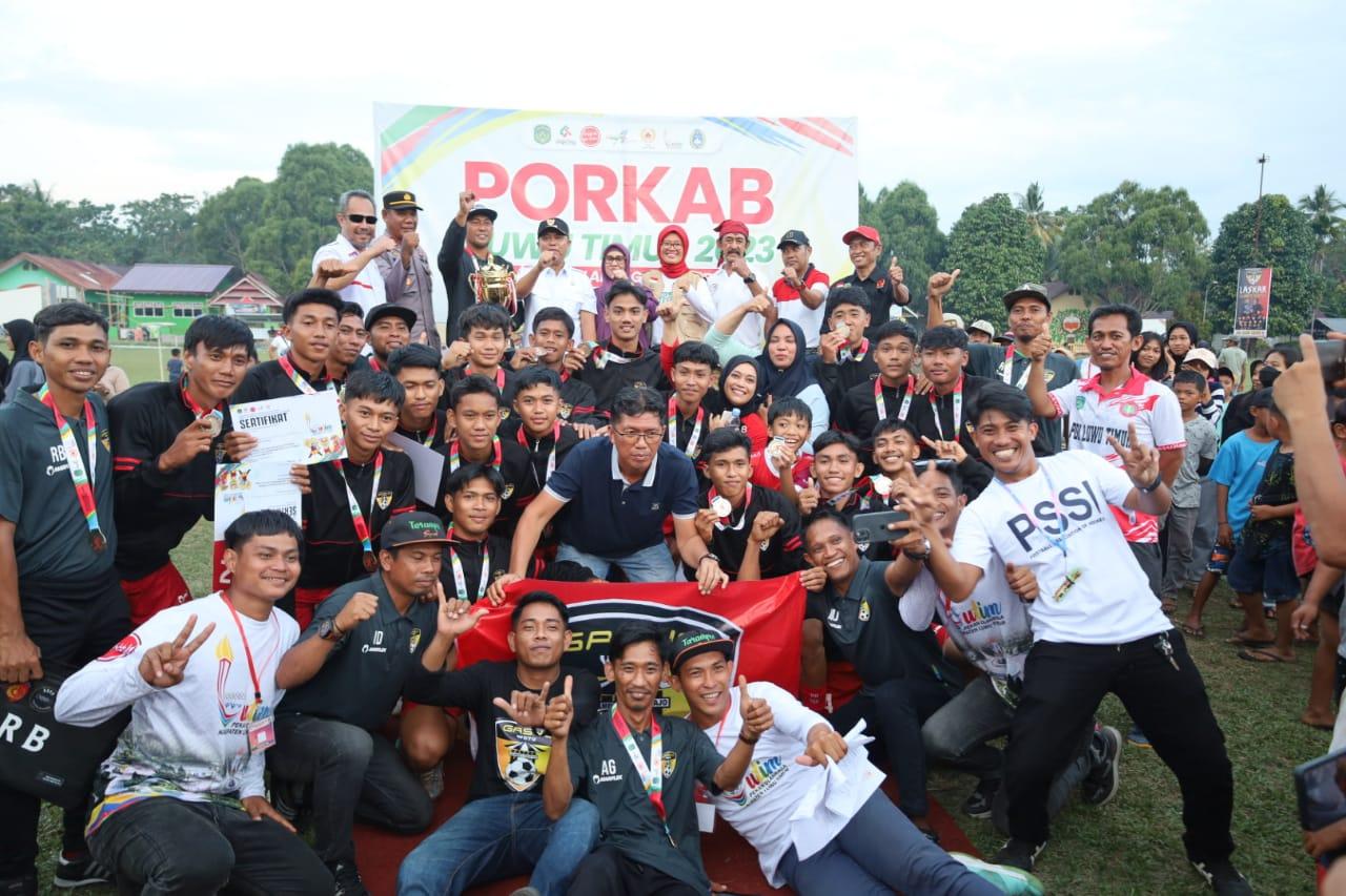 TRIBUNLUTIM.COM, WOTU - Gaswo Wotu juara pekan olahraga kabupaten (Porkab) Luwu Timur cabang sepak bola, Sabtu (16/9/2023).
