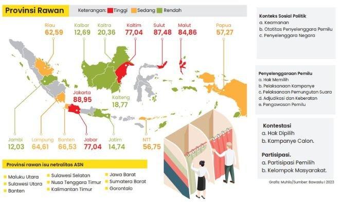 Terbaru, Kamis (21/9/2023) Bawaslu RI merilis Indeks Kerawanan Pemilu (IKP) dengan isu netralitas ASN.