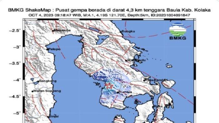 Update Gempa Bumi M 4.1 Getarkan Kolaka, BMKG: Pusat Gempa di Darat 4,3 Kilometer Tenggara Baula