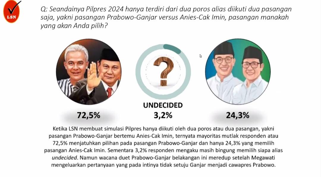 Survei Terbaru LSN: Prabowo Vs Ganjar Vs Anies
