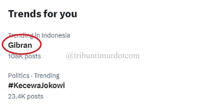 Gibran trending di Twitter usai Ketua Umum Partai Gerindra Prabowo Subianto, mengumumkan Gibran Rakabuming Raka, sebagai cawapres, Minggu (22/10/2023)