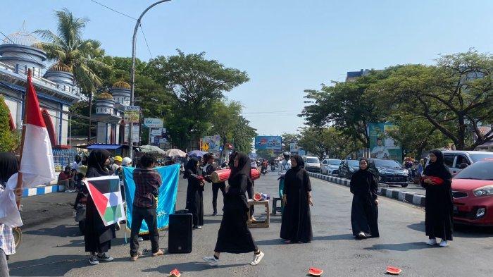 Aksi teatrikal diperagakan beberapa mahasiswa itu menggambarkan kekejaman tentara Israel terhadap masyarakat Palestina, khususnya terhadap kaum perempuan dan anak-anak.